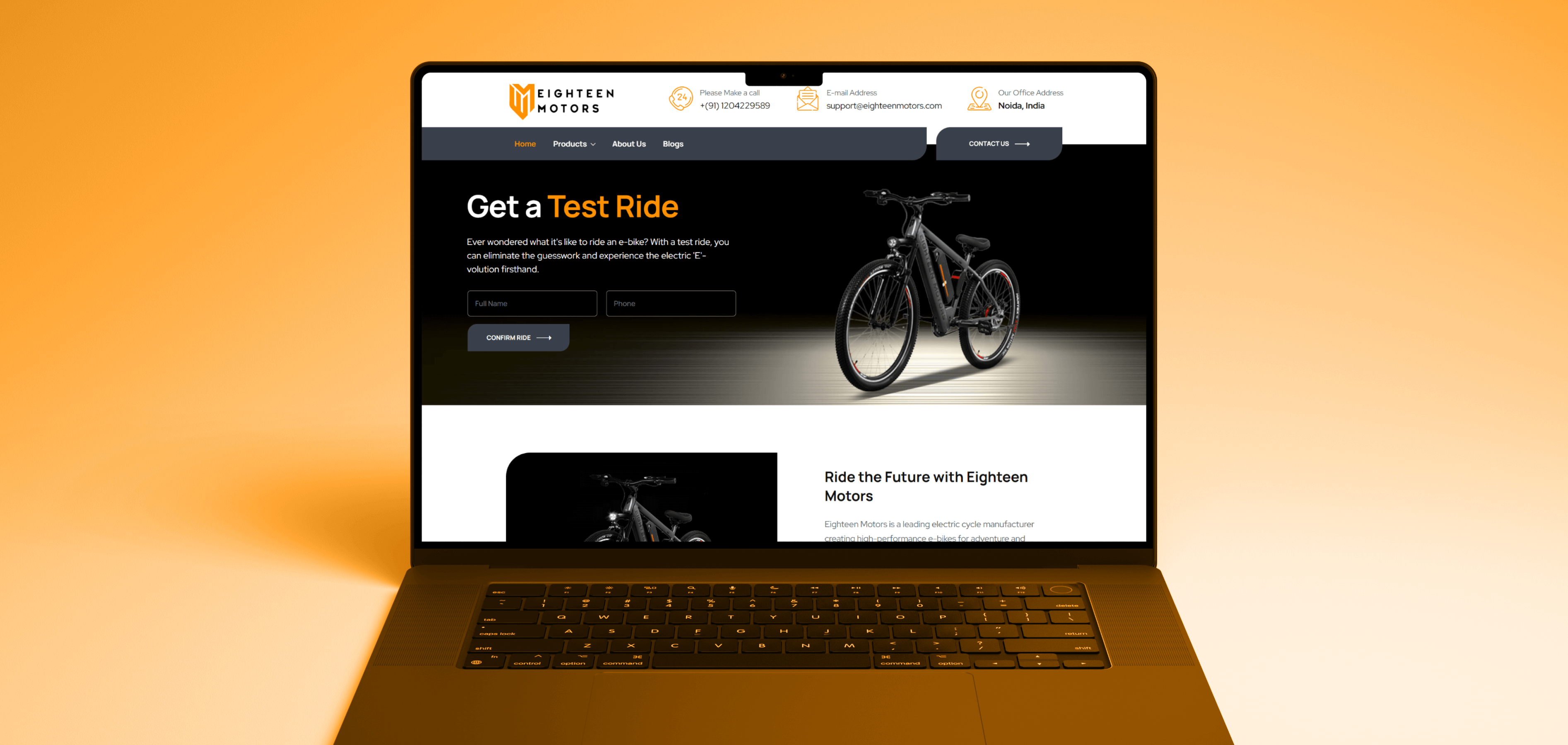 Eighteen Motors is an electric vehicle company focused on next-generation e-bicycles. I developed a highly responsive and interactive product showcase website, integrating animation effects, and smooth scrolling to highlight each model’s innovation. The development process prioritized performance optimization and cross-device fluidity. The final product delivers both visual excitement and functional reliability.
