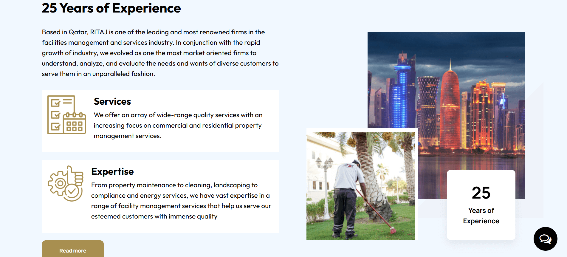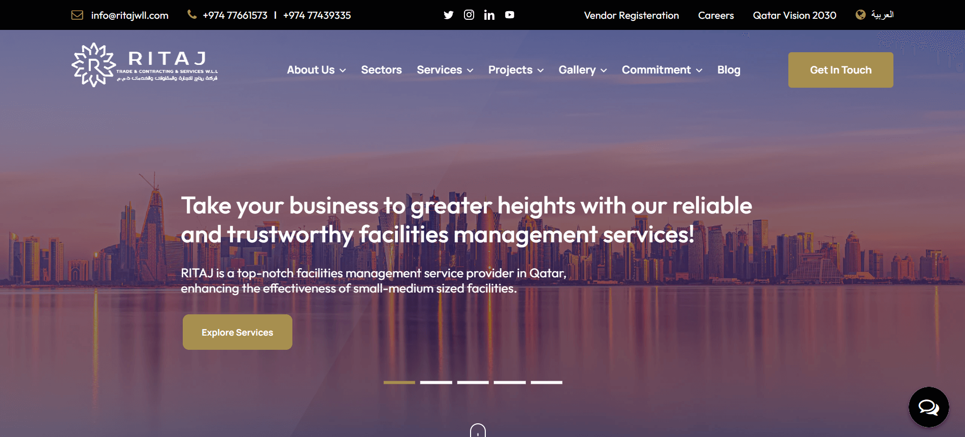 RJFMS is a Qatar-based facilities management company offering property maintenance, cleaning, and engineering services. For the website, I focused on creating a professional, trustworthy, and service-oriented design, backed by robust development for scalability and multilingual support. With fast-loading pages, responsive grids, and clean interface development, the result is a platform that effectively bridges professionalism with accessibility for local and global clients.